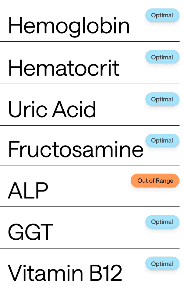 Most blood testing companies charge $500 or more for a single test per biomarker, providing only a one-time snapshot that doesn’t capture your long-term health trends or reflect your true baseline. This approach can lead to missed patterns or even misdiagnoses due to limited data. Rythm takes a different approach, using monthly tracking to build a detailed picture of your health over time. This allows for more accurate insights, better optimization, and a clearer understanding of how your body is evolving.